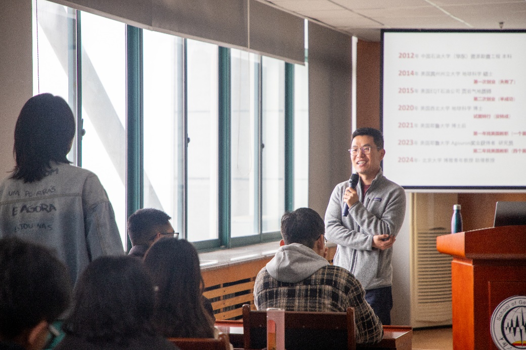 在讲座尾声的互动环节,学生们纷纷向王博士提问,如何克服出国后的文化差异,如何在科研道路上找到自己的方向,油气勘探行业未来发展前景怎么样……现场气氛热烈。王博士耐心地为学生们解答,并分享了自己的经验和见解。当学生问及如何突破迷茫期时,王久源表示,迷茫是正常的,不要因为迷茫而沮丧。相反,同学们应该勇敢面对,积极寻找解决问题的方法。他鼓励学生们要敢于试错,从失败中汲取经验,不断前行。资源2102班岳鑫垣感慨道:“王久源博士讲述了其从石大到美国再回国任教的求学、科研和工作经历,令我获益匪浅,人生的道路有很多,无论作出哪种选择最重要的是要在这个过程中时刻坚持学习!”