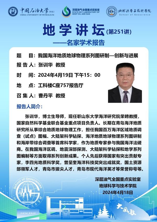 【地学讲坛第251讲】关于张训华教授学术报告的通知