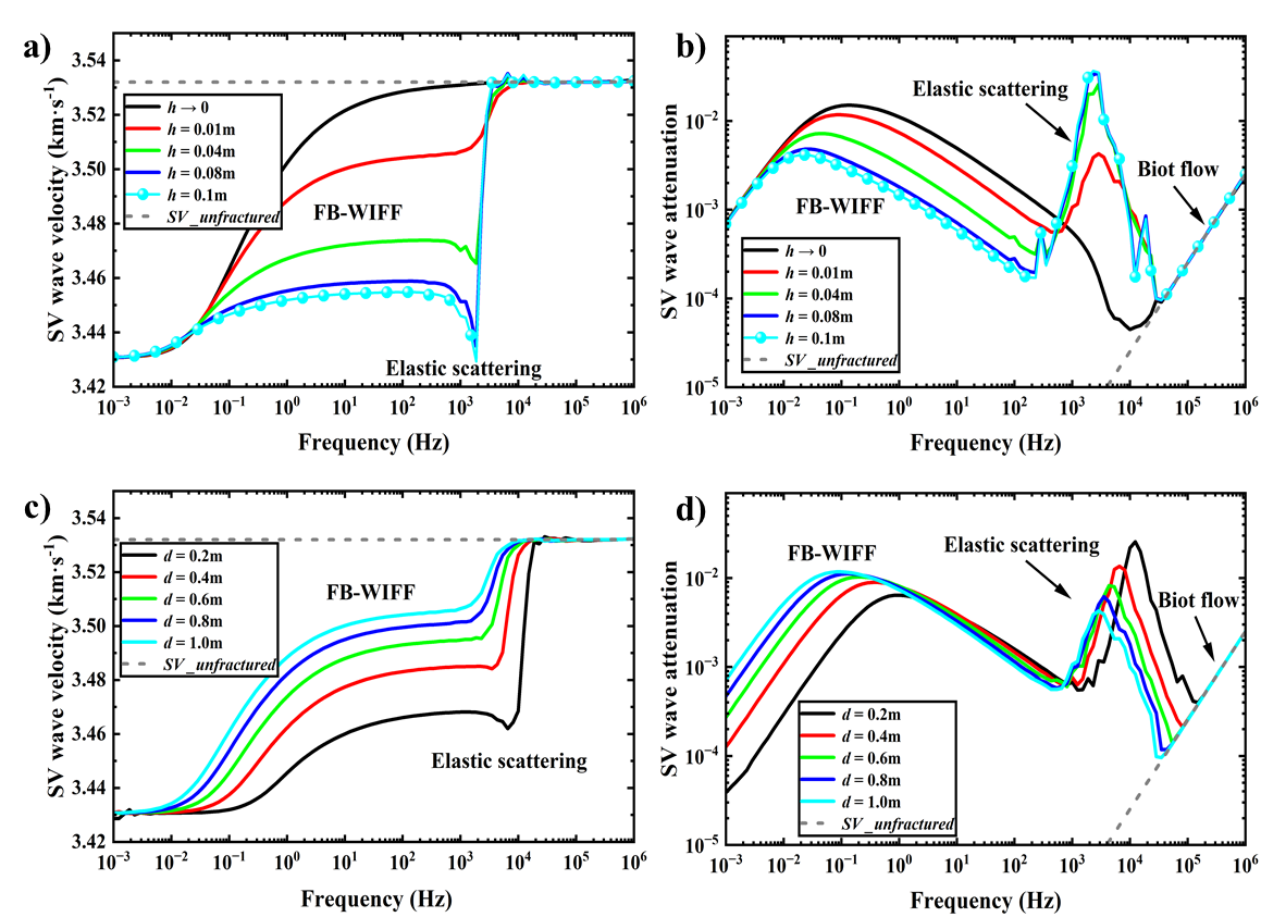 通过与插值模型(I-A模型)以及实验室超声测量数据的对比,验证了所建模型的准确性和有效性。本文旨在阐明断裂性复合多孔岩石中SV横波的弹性波动机理,为裂缝的精细探测和表征提供理论依据。