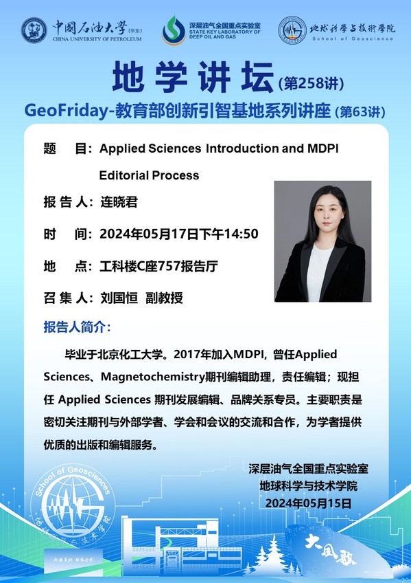 【地学讲坛第258讲】关于连晓君 《Applied Sciences Introduction and MDPI Editorial Process》学术报告的通知