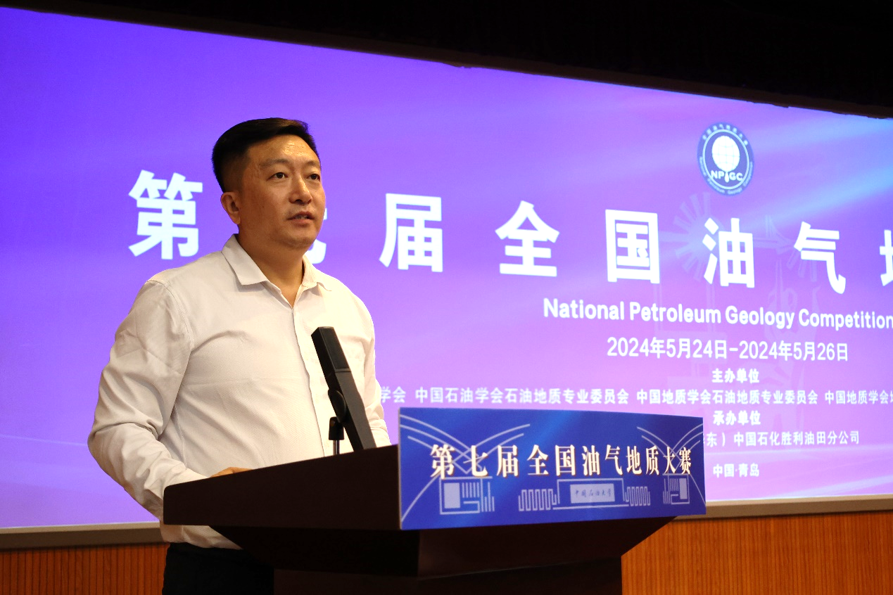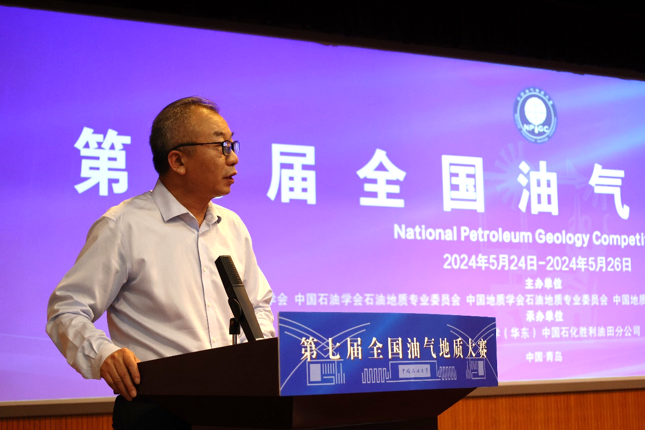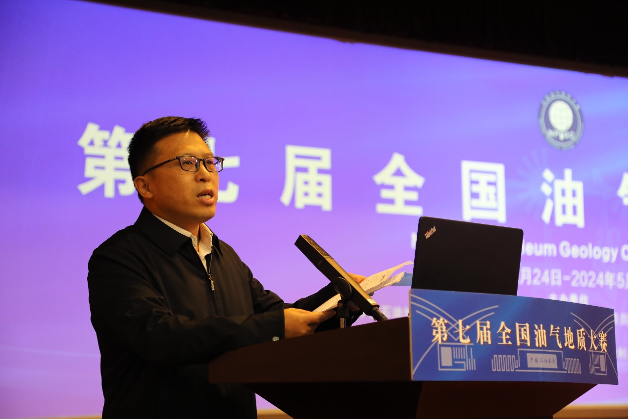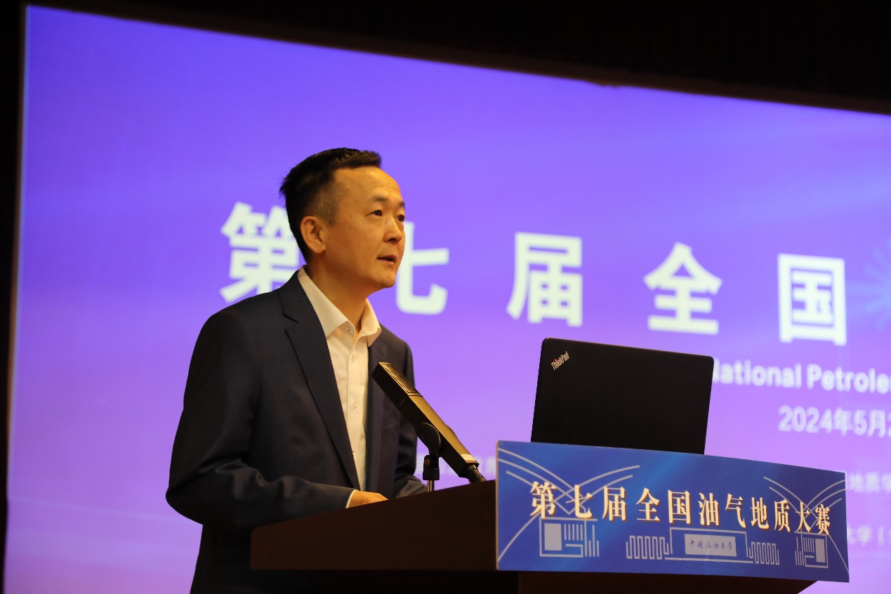张广清代表本届大赛主办单位致辞。他表示,中国石油大学(北京)始终坚持把科技创新作为引领发展的第一动力,把服务国家重大战略需求作为最高追求,聚焦培养能源技术领军人才。近年来,依托全国油气地质大赛,学校坚持以赛促学、以赛促教,让学生能够在实践中不断提升创新思维、专业素养和综合素质,同时在此过程中检验教学质量和人才培养效果。相信本届大赛将继续构建一个全面、立体、有序的竞赛生态,为广大优秀学子提供更多展示自我、挑战自我、超越自我的机会,为各参赛高校、企业的人才培养注入新的活力和动力。