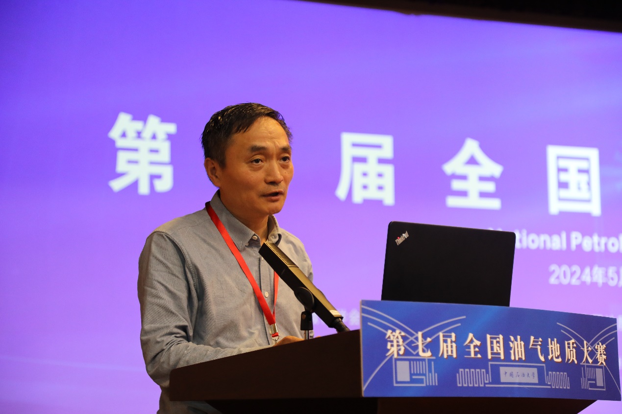 张世明代表本届大赛联合承办单位致辞。他表示,端牢能源的饭碗,迫切的需要理论和技术创新,提升勘探开发效率,有效的保障能源供应的稳定性,促进能源行业的健康发展。本届大赛的举办对于油气地质行业人才的培养具有重要意义,将助力行业高校培养服务国家石油地质发展的创新型、应用型人才。希望广大油气地质学子不断夯实专业基础,提高专业素养,增强专业技能,胸怀梦想、勇担使命、接续奋斗,把个人的价值追求融入到国家油气事业中,努力成为新时代油气地质行业合格的接班人,为保障国家能源安全贡献力量。