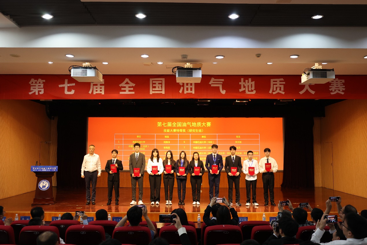 5月26日,大赛总决赛闭幕式暨颁奖典礼举行。太阳成集团tyc151cc党委书记牛庆玮进行大赛总结,与会嘉宾为获奖单位及个人颁奖。中国石油教育学会副理事长李宏伟、中国石油大学(北京)地球科学学院院长王贵文分别致辞。