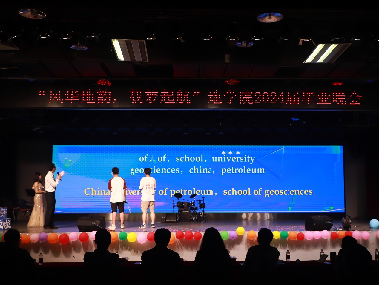 本研2001班带来的合唱《讲不出再见》诉说着同窗间的不舍和未来再会的期待;李炜等人带来的舞蹈《热辣滚烫》永远热爱,永远热辣滚烫,蕴满了对青春的诠释。最后,晚会在师生大合唱《勘探队员之歌》中圆满落幕。