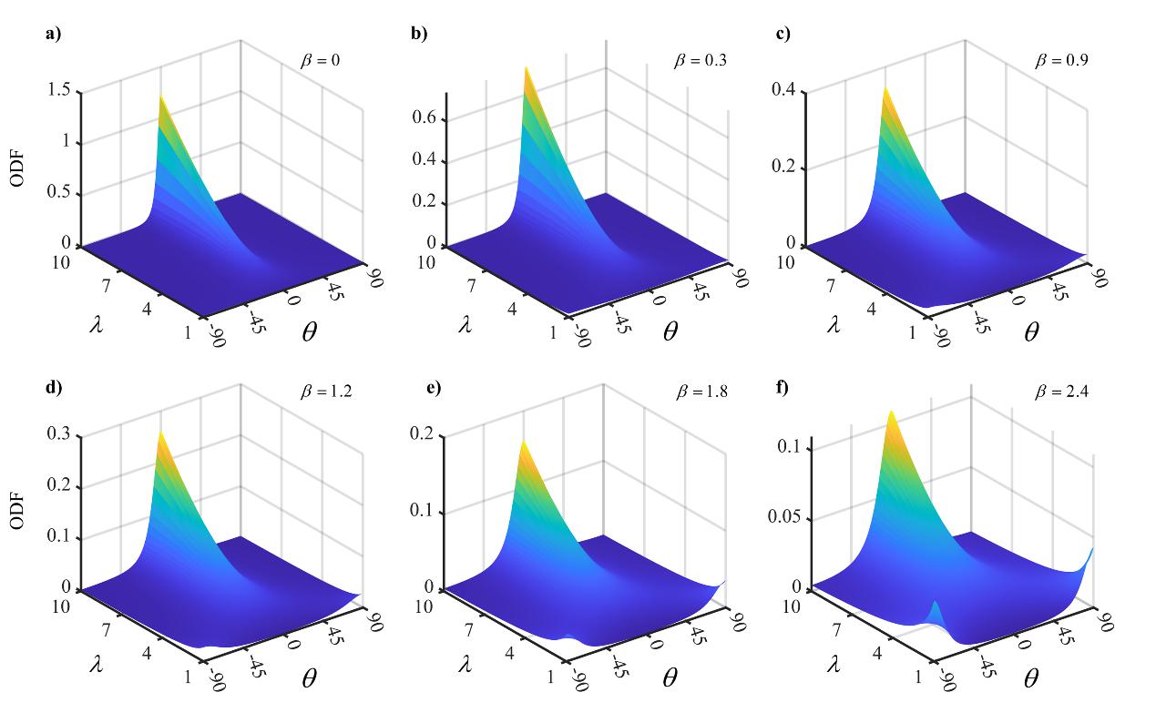 图2 非平板颗粒以及压实作用对泥岩板晶ODF的影响
