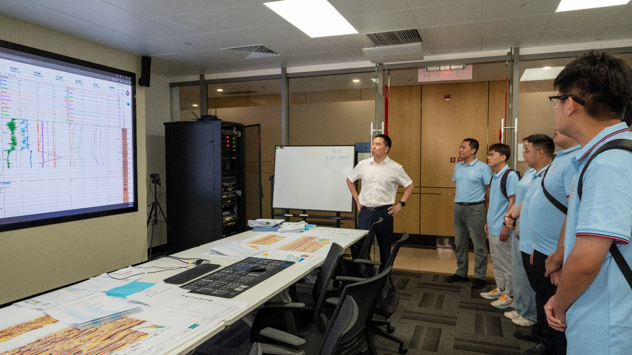 在中海油海南分公司勘探研究院,物探总师李芳介绍研究院基本情况,并与实践团就人工智能、机器学习等技术在油田的应用展开深入交流。魏周拓表示希望通过本次实践,提高学生的现场实践能力和信息化应用能力,为能源主战场输送更多能力过硬的复合型勘探人才。