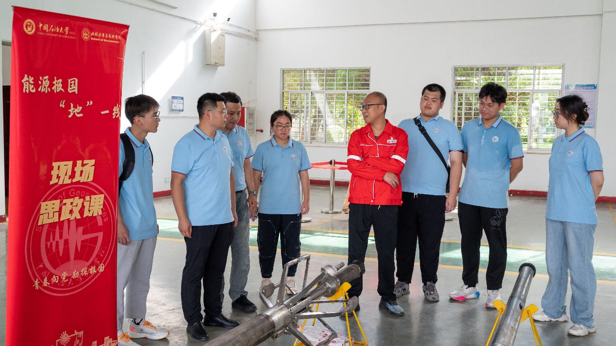 “这个是电成像测井仪,那个是电阻率测井仪,上个学期《地球物理测井》课中都学习过,经过现场工程师的讲解,我对于这些仪器的结构和功能有了更深的认识。”本研地学2201班姚景瑞在中油测井公司华北分公司海南项目部见到了“饱含油味”的测井仪器。
