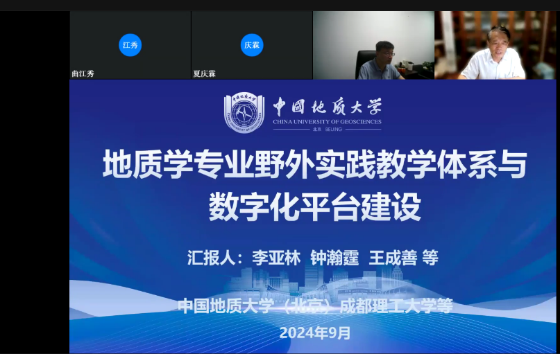 2024年9月19日,教育部“资源勘查工程专业虚拟教研室”举办了线上一流专业建设专题论坛,特邀中国地质大学(北京)地球科学与资源学院院长李亚林教授作了“地质学专业野外实践教学体系与数字化平台建设”的专题报告,来自我校、中国地质大学(武汉)、中国矿业大学(北京)等全国多所高校的60余位教师参加了会议,会议由教研室主任蒋有录教授主持。
