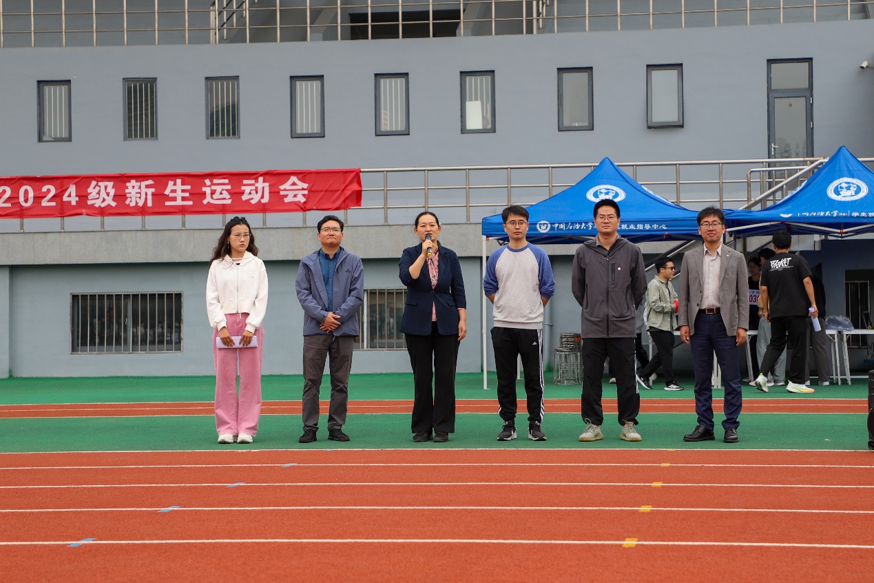 为激发新生对体育锻炼的热情,培养终身运动的习惯,展现学院学子的活力与精神风貌,2024年10月13日下午,地学院在运动场举办2024级新生运动会,地学院党委副书记郑珊珊老师、团委书记王力禾老师、新生辅导员及部分新生班主任亲临现场,为运动员们加油鼓劲。