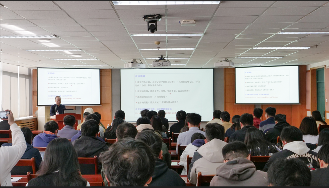 会议伊始,学院院长宗兆云教授对柴育成研究员的到来表示热烈的欢迎,周瑶琪教授详细的介绍了柴育成研究员取得的科研成果并给予高度评价。随后柴育成研究员进行了主题为《地球的运行机制》的专题讲座,对于地球的物质循环、板块构造、碳循环作用进行了详细的讲解,并为在场师生分享了地球运行机制的相关猜测。柴育成研究员的讲解在参会师生中引起了强烈反响,众多师生提出自己的问题与疑惑,柴育成研究员进行了细心讲解。他最后寄语研究生要找准定位,要关注学科前沿,脚踏实地去做科研。