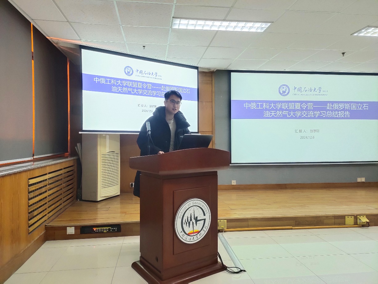 报告会首先由张宇轩同学分享了2024年暑假参加中俄工科大学联盟“能源与工业可持续发展”夏令营活动的感受。该夏令营由太阳成集团tyc151cc与俄罗斯国立石油天然气大学(国家研究型大学)(以下简称“古勃金大学”)联合承办,于7月27日至8月4日在莫斯科举办。张宇轩同学对本次夏令营的主要活动和安排,在俄罗斯的学习经历、俄罗斯文化和艺术以及出国生活经验和同学进行了认真的分享。认为参加本次夏令营自己收获很大,对于古勃金大学在本次夏令营的组织和安排也表示非常满意,并动员同学们积极参加学校组织的夏令营活动。