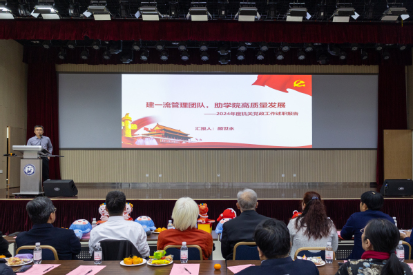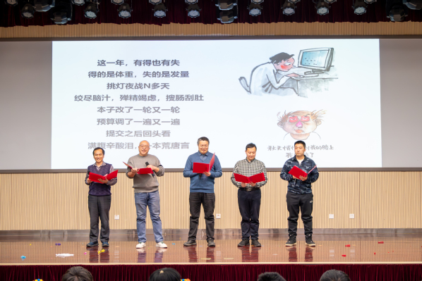 牛庆玮宣读《关于表彰2024年度先进集体、先进个人的决定》。他向所有获表彰的先进集体、先进个人表示祝贺,向全院所有教职工的无私奉献和实干进取表示感谢。2025年学院将进一步浓厚温馨和谐的“家”文化氛围,希望每一位师生员工都能绽放光彩,以更加饱满的热情和干劲投身学院高质量发展。