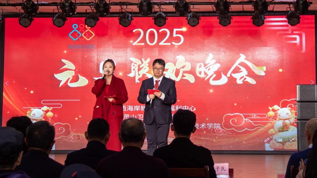 为丰富社区群众精神文化生活,提高福利中心老年人生活品质,以真情服务暖人心、聚民心、筑同心,12月28日,地学院春晖志愿服务队与西海岸新区社区福利中心、灵山卫街道珠光路社区联合举办元旦联欢晚会,学院党委副书记郑珊珊、团委书记王力禾,灵山卫街道便民服务中心主任杜希向,区社区福利中心负责人赵金刚,珠光路社区书记董子民,福利中心老人和春晖志愿服务队同学们参加活动。