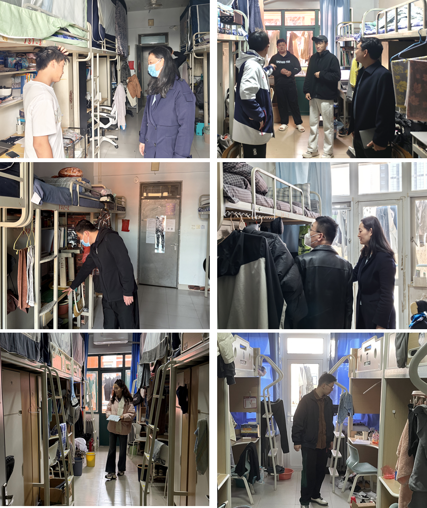 传递温暖进宿舍,习惯养成促学风。为进一步加强学生宿舍的安全管理,培养学生良好生活习惯,学院针对宿舍管理中存在的问题出台《提升方案》。学院党委副书记坚持每周深入宿舍,看望慰问学生,与学生亲切交谈,详细询问同学们的学习情况、生活状态以及遇到的困难和问题。辅导员每天早上进入宿舍,进行安全卫生检查,督促同学养成早起良好习惯,同时将寝室安全检查转化为育人的良好契机,耐心解答学生关于校园生活的疑问,普及电信诈骗防范知识,开展价值引领、学业帮扶、就业指导等育人工作。此外,学院组织学生干部开展常态化“一周两查”宿舍卫生安全检查,并及时公布宿舍卫生检查结果,每学期表彰典型宿舍,持续强化宿舍卫生安全工作,培养学生良好卫生习惯。