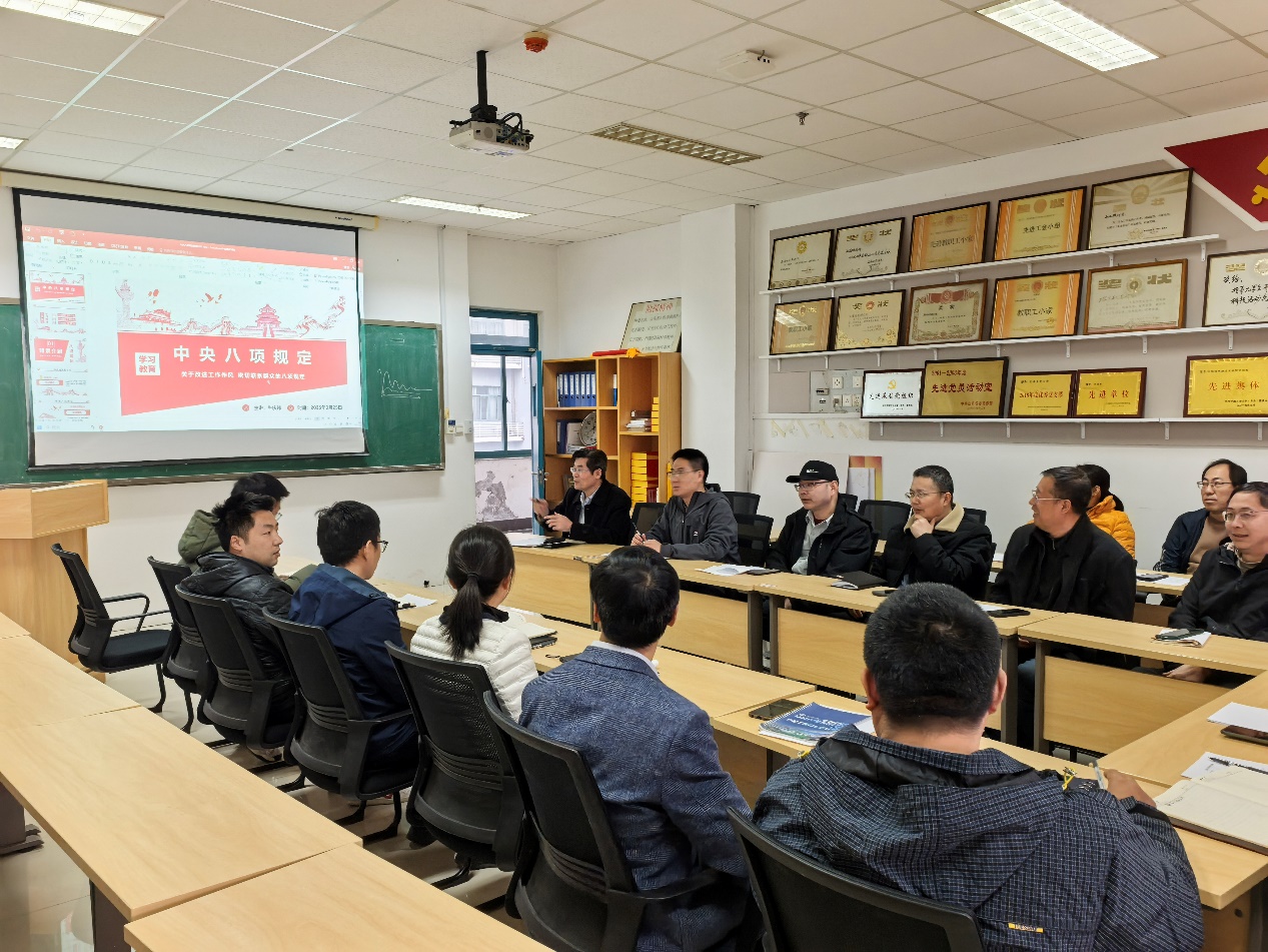 首先,张立强带领全体党员认真学习了中央八项规定精神,传达了《学院党委2025年工作要点》、《学院2025年工作要点》。