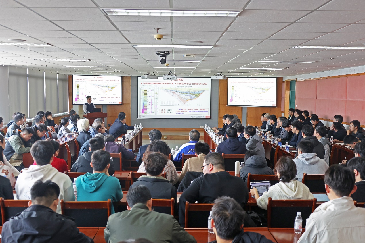 济阳坳陷页岩油资源量大,多洼陷、多口水平井的峰值日产油量超过百吨,初步实现了页岩油革命的良好开端。刘惠民总地质师系统讲述了济阳坳陷页岩油勘探开发历史、基本地质地化特征和取得的重大进展,重点对济阳坳陷页岩岩相划分与分布特征、孔缝结构与储集演化及页岩油富集可动与资源潜力方面进行详细阐述。最后刘惠民总地质师指出了济阳坳陷页岩油勘探存在的问题与攻关方向,为参会师生下一步学习和研究指明了方向。