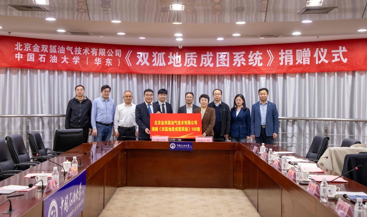 4月21日,北京金双狐油气技术有限公司向我校捐赠《双狐地质成图系统》软件并举行签约仪式。公司董事长周国强、技术支持部经理杨帆,副校长张玲玲、地学院院长宗兆云等出席活动。合作发展处处长胡义贵主持捐赠仪式。
