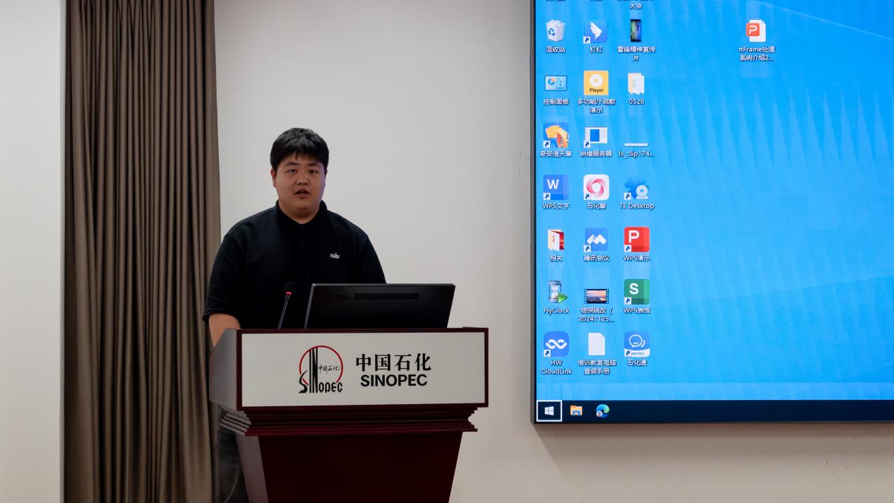 物探院地球物理软件研究所杨子兴和陈科两位技术专家重点介绍了物探院自主研发的处理和解释软件“π”和“NEWS”。他们从技术原理、应用场景及创新优势等方面展开讲解,指出这两款软件在解决油气勘探“卡脖子”问题中发挥的重要作用。“物有象、探无疆,只有将核心技术掌握在自己手中,才能实现真正的独立自主。”杨子兴的发言引起实践团的共鸣,国产软件的崛起为科研工作提供了更安全、高效的保障。