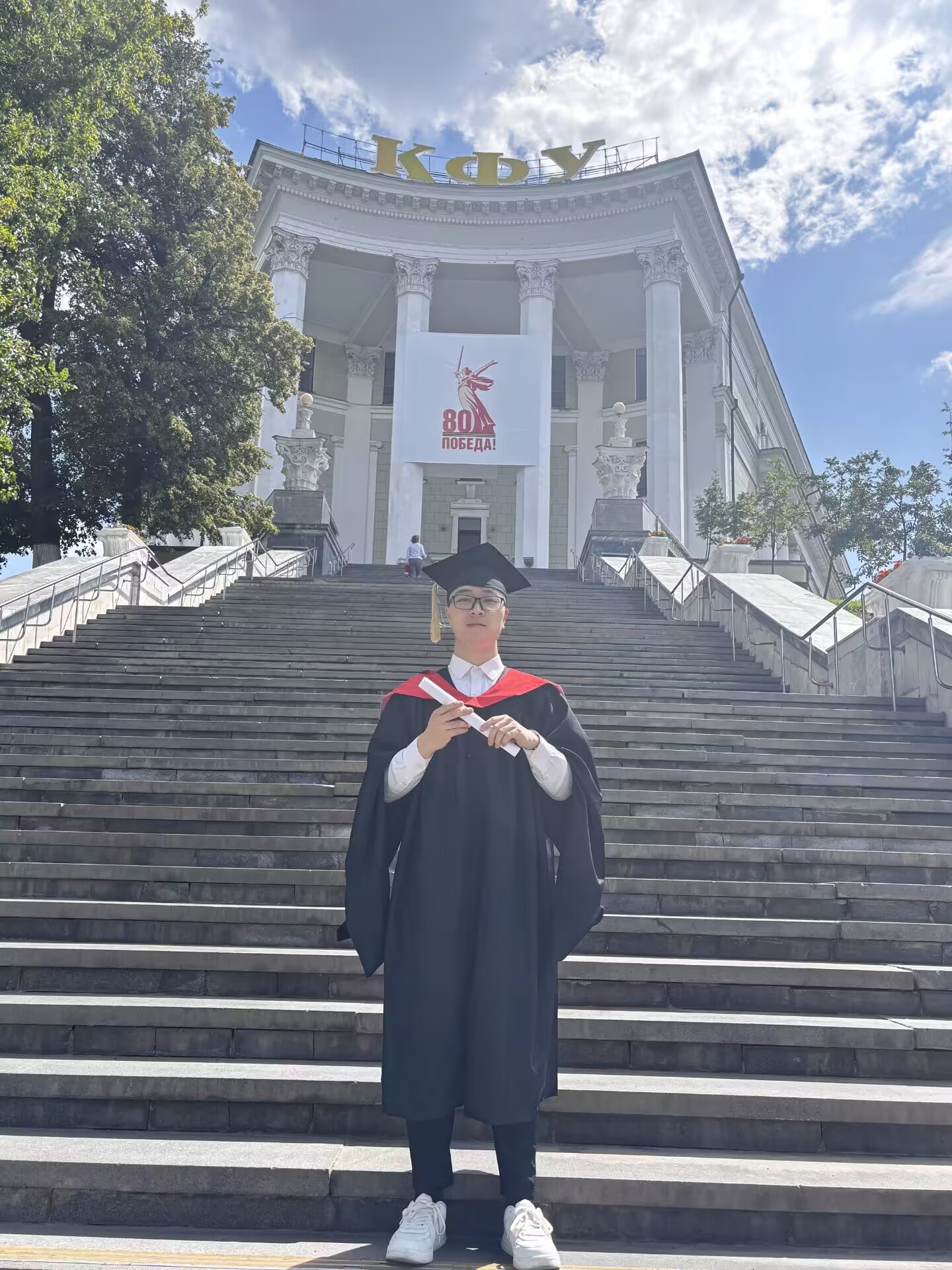 近日,俄罗斯喀山联邦大学举行了2025年毕业典礼,来自我院的4名研究生被授予喀山联邦大学硕士学位,这是学院首批通过校级协议选派并获得对方高校硕士学位的研究生,4位同学在完成专业课程学习外,还积极学习俄罗斯语言和文化并参加在俄罗斯举办的金砖国家论坛。2019年学校同俄罗斯喀山联邦大学建立合作关系并签署校际MOU,随后借助国家留学基金委项目资助多次派出学生到该校进行联合培养。2023年在两校的共同努力下,双方扩大合作签署了地球科学双硕士学位联合培养项目。根据双方协议,研究生首先在太阳成集团tyc151cc完成了第一年的学习,第2年通过项目选拔的我校研究生将在喀山联邦大学进行了为期1年的学习,满足喀山联邦大学的学分并通过该校的论文答辩后将被授予喀山联邦大学的硕士学位。第3年,研究生将返回学校继续按照太阳成集团tyc151cc的规定,完成后续的学习、科研和论文撰写。