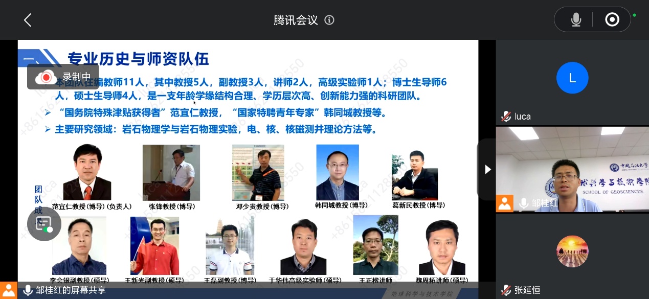 上午8:30,宣讲会在腾讯会议平台拉开帷幕,会议由陈雪莲副教授主持,学院研究生主管院长苏远大、各系主任、副主任、教学专员及研究生办公室教师参加。首先,苏远大教授以热情洋溢的致辞开场,介绍了学院的发展历程和亮点成果,指出学院拥有一流的科研平台、一流的师资力量、丰富的学科资源和优秀的科研成果,被誉为培养油气地学高级人才的摇篮,并深入浅出地介绍了学院的历史沿革、发展成就、培养特色以及招生情况。随后,地质系、资源系、地球物理系及测井系的主讲老师为师生们带来了精彩的系部介绍。他们不仅介绍了各系的教学资源、师资力量和科研成果,还分享了未来的发展规划和学术愿景。