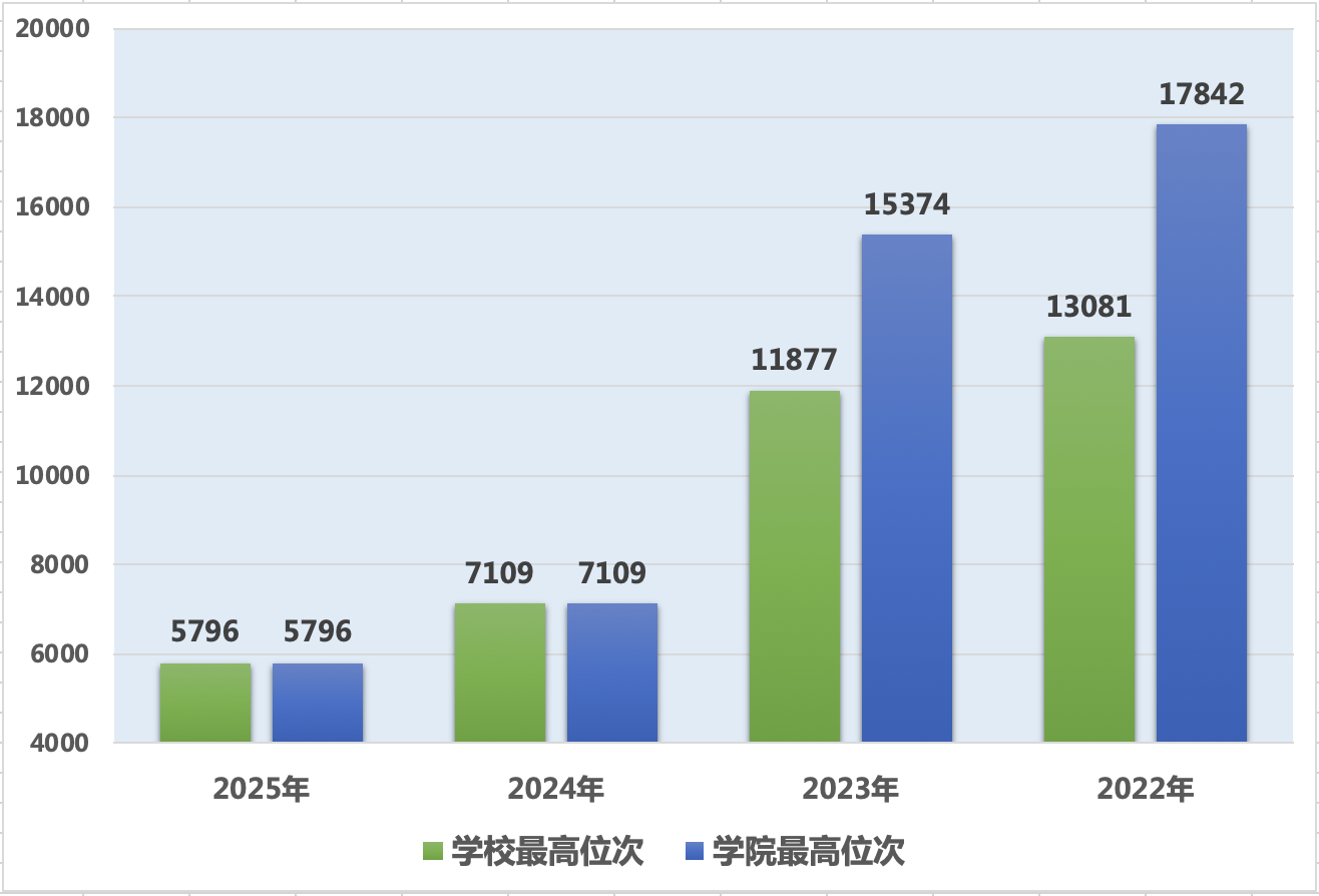 图3 近4年学校和学院在四川省录取生源最高位次提升对比图
