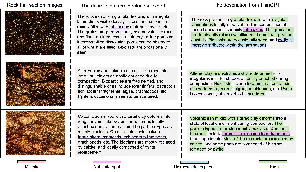 图3 ThinGPT对碳酸盐岩薄片的鉴定效果对比