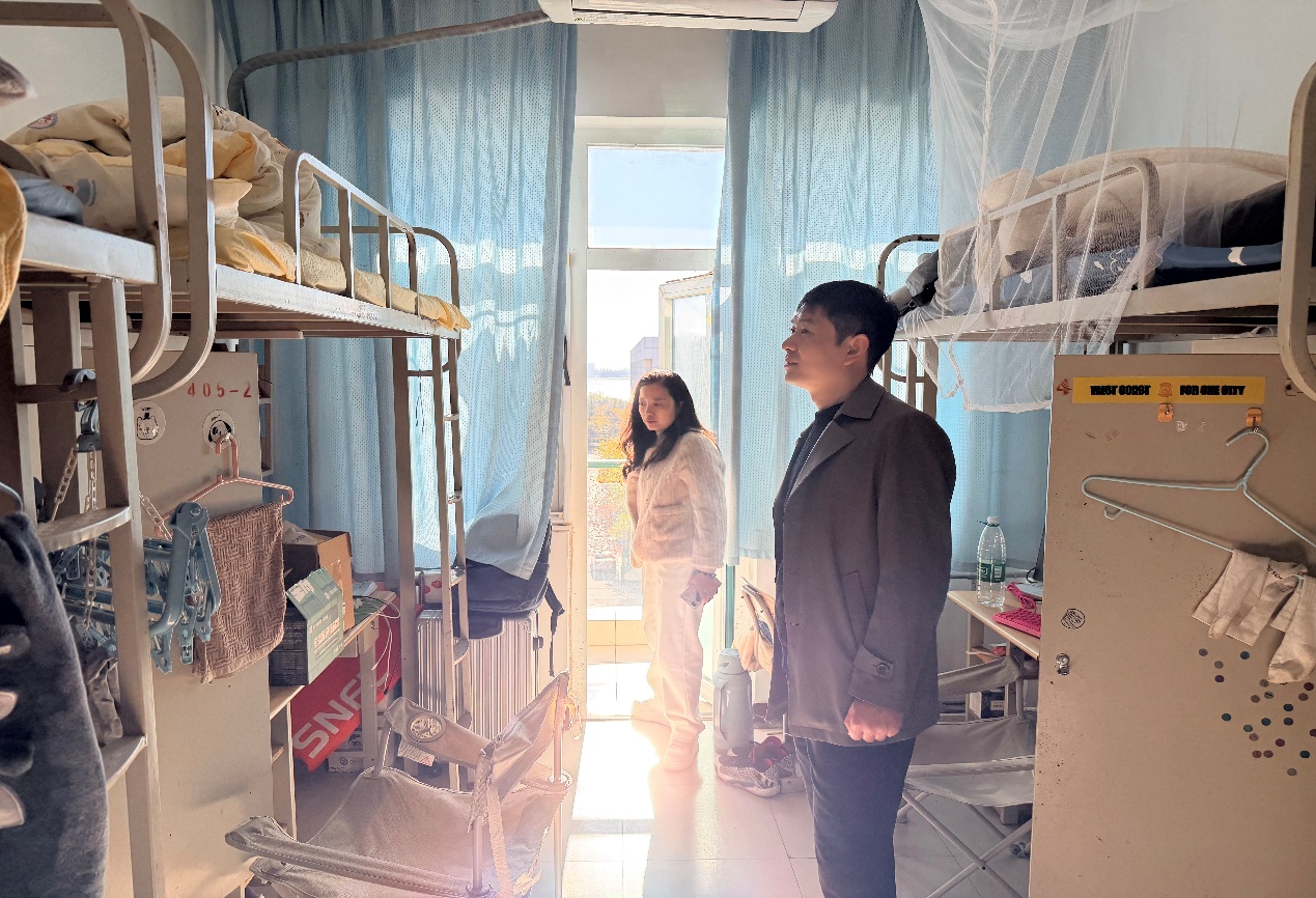 走访期间,穆洋洋与学生亲切交流,详细询问学生的住宿体验、学习生活情况及实际需求,耐心倾听学生诉求。他强调,宿舍是学生在校期间学习生活的重要场所,安全是底线,卫生是基础,希望同学们提高安全防范意识,自觉遵守宿舍管理规定,杜绝各类安全隐患;同时要相互协作,共同维护宿舍环境,养成良好的生活习惯,让宿舍成为温馨和谐的 “第二家园”。