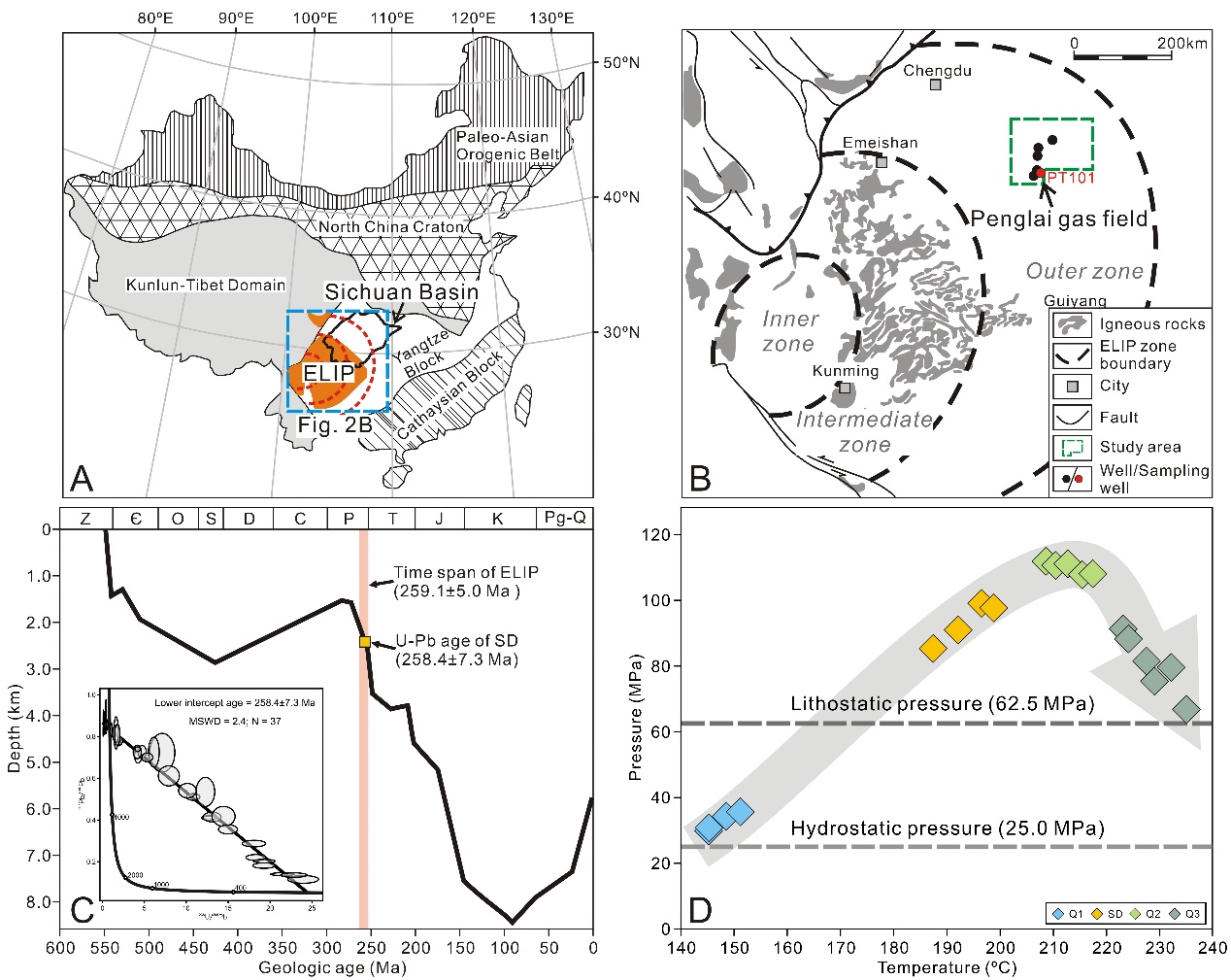 二叠纪大灭绝是地球历史上最具毁灭性的自然灾害事件,导致约90%的海洋物种、70%的陆生脊椎动物物种、30%的昆虫目以及未知比例的陆地和海洋植物灭绝。除目前被业界普遍接受的小行星撞击、火山活动等因素外,与大火成岩省侵位相关的热成因温室气体(包括CO2和CH4等)排放也被认为是二叠纪大灭绝的重要原因之一。以往对热成因温室气体的研究主要依赖于间接证据或化石燃料热解产物,然而关于热成因温室气体与大火成岩省侵位之间耦合关系的研究相对薄弱,这制约了人们对热成因温室气体形成机理方面的认识。