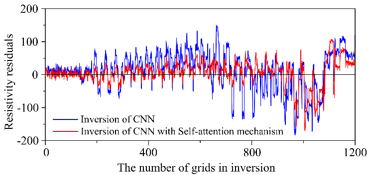 图1. 基于预测电阻率和真实电阻率得出的残差曲线