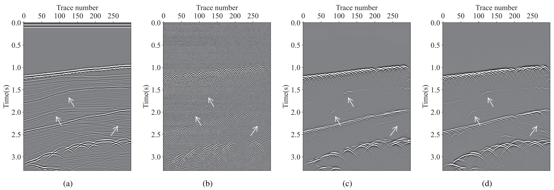 地震绕射波携带了地下地质目标(如尖灭、断层和裂缝等)的重要波场信息。然而,由于绕射波振幅相对较低且与反射波场重叠,在常规地震成像过程中通常被忽略或难以利用。利用分离出的绕射波进行成像,可以显著增强复杂地质目标的图像分辨率。传统方法(如PWD)和常规深度学习方法虽已用于绕射波分离,但在处理复杂数据时精度往往受限。