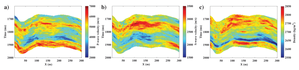 (a)纵波速度;(b)横波速度;(c)密度