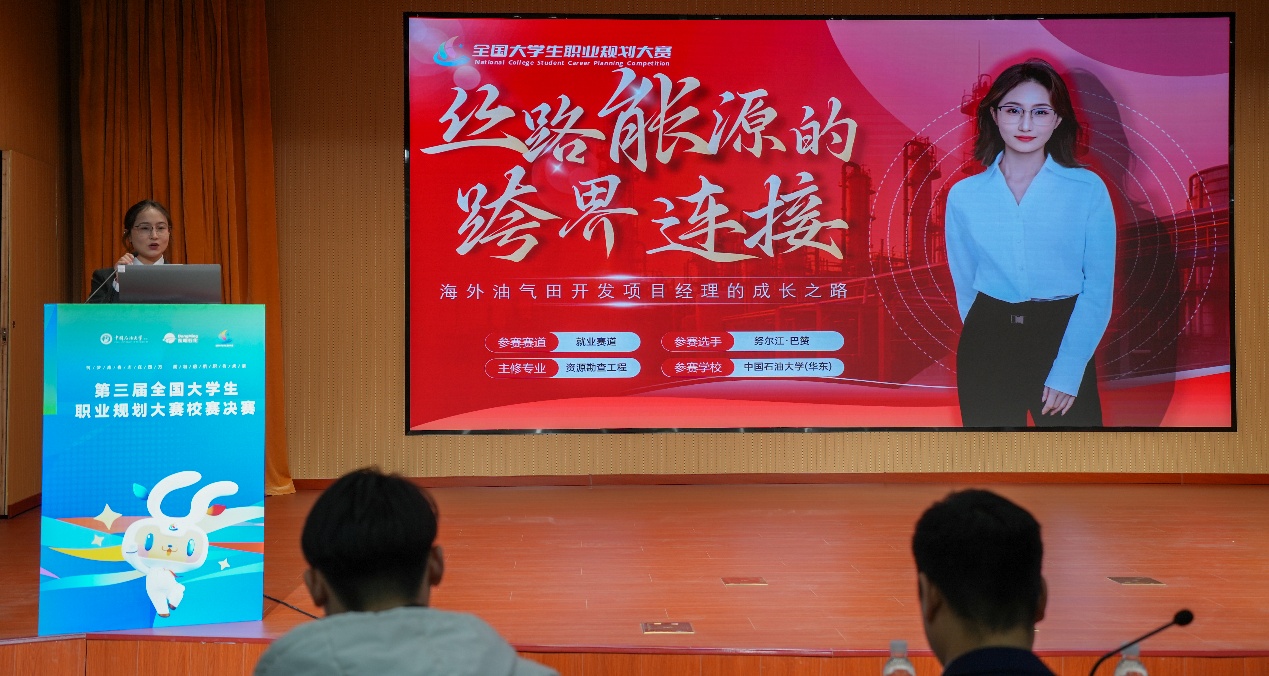 本次大赛自启动以来,学院充分动员,学生积极参与,共有1144名同学报名参加院部初赛,经过院级初赛、校级复赛的层层选拔,选手们在决赛中通过现场演讲、PPT展示等多种形式,全面阐述职业目标、成长路径与实践经历。本次比赛中,我院参赛学子紧密结合专业与国家能源战略,展现了清晰的成长蓝图与坚定的报国志向。2022级生努尔江立志做“丝路能源的跨界连接者”,凭借与能源行业需求紧密结合的职业规划,在就业赛道脱颖而出,荣获就业赛道银奖;2024级本科生于慧茜则以“为国寻油”为志向,结合地学专业学习、科研实践与综合素质全面成长,荣获成长赛道铜奖,展现出清晰的发展规划与能源报国的责任担当。