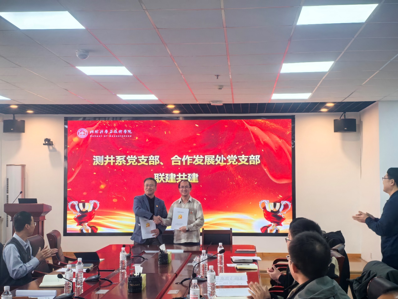为深入贯彻新时代党的建设总要求,创新党建工作载体,推动党建与业务深度融合,2025年12月16日,学院测井系党支部与合作发展处(基金会、校友会)、服务山东办公室党支部在工科楼C271成功举办党建联建共建活动。学院党委副书记穆洋洋主持活动,双方20余名党员同志参加此次共建。