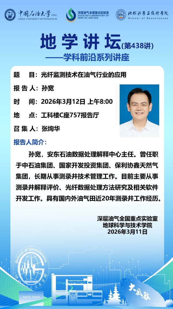 【地学讲坛第438讲】关于孙宽 《光纤监测技术在油气行业的应用》学术报告的通知