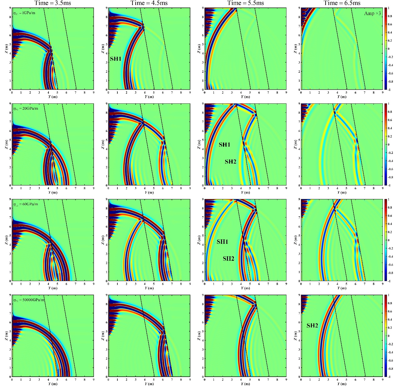 结果表明:双裂缝体系中远裂缝能否被有效探测取决于近裂缝的剪切刚度,当近裂缝被油气等流体介质填充时,其剪切刚度趋于0,入射SH横波大部分被反射,远裂缝无法被识别;当近裂缝被硬矿物填充时,其剪切刚度趋于无穷,入射SH横波将“透过”近裂缝,远裂缝能够被有效识别。